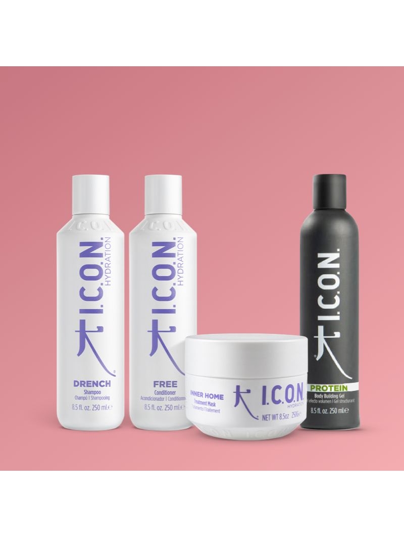 تتضمن مجموعة ICON Hydration كل ما تحتاجينه لمنح شعرك أقصى قدر من الترطيب، ولكن أيضًا القوة واللمعان الذي يحتاجه. يحتوي صندوق واحد على شامبو Drench وبلسم Free وعلاج Inner Home، وهو يحتوي على الملحقات الأساسية التي تمنح شعرك حياة جديدة .