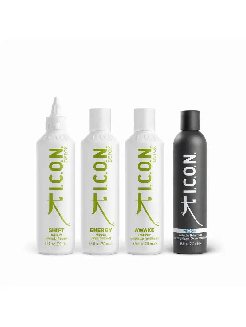 „ICON Detox“ produktai sukurti visų tipų plaukams valyti ir giliai valyti. Taigi, nesvarbu, ar jūsų plaukai tiesūs, garbanoti, ar banguoti, su „Detox Energy“ šampūnu, „Awake“ kondicionieriumi ir „Shift Treatment“ rinkiniu pasieksite visišką detoksikaciją, kuri padės pagerinti bendrą plaukų išvaizdą.