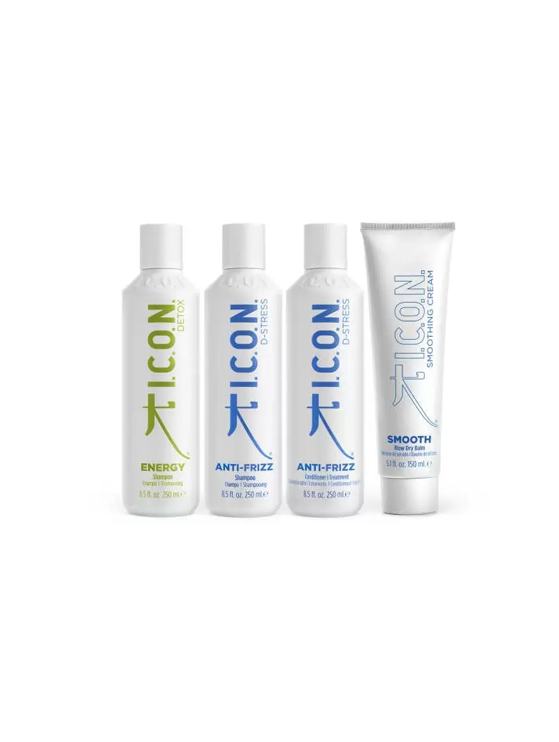 Každý z produktov v balení ICON Anti-Frizz sa odporúča pre všetky typy vlasov, hoci sa odporúča najmä pre rovné vlasy náchylné na krepovatenie, aby sa zabezpečila ich vynikajúca hladkosť.